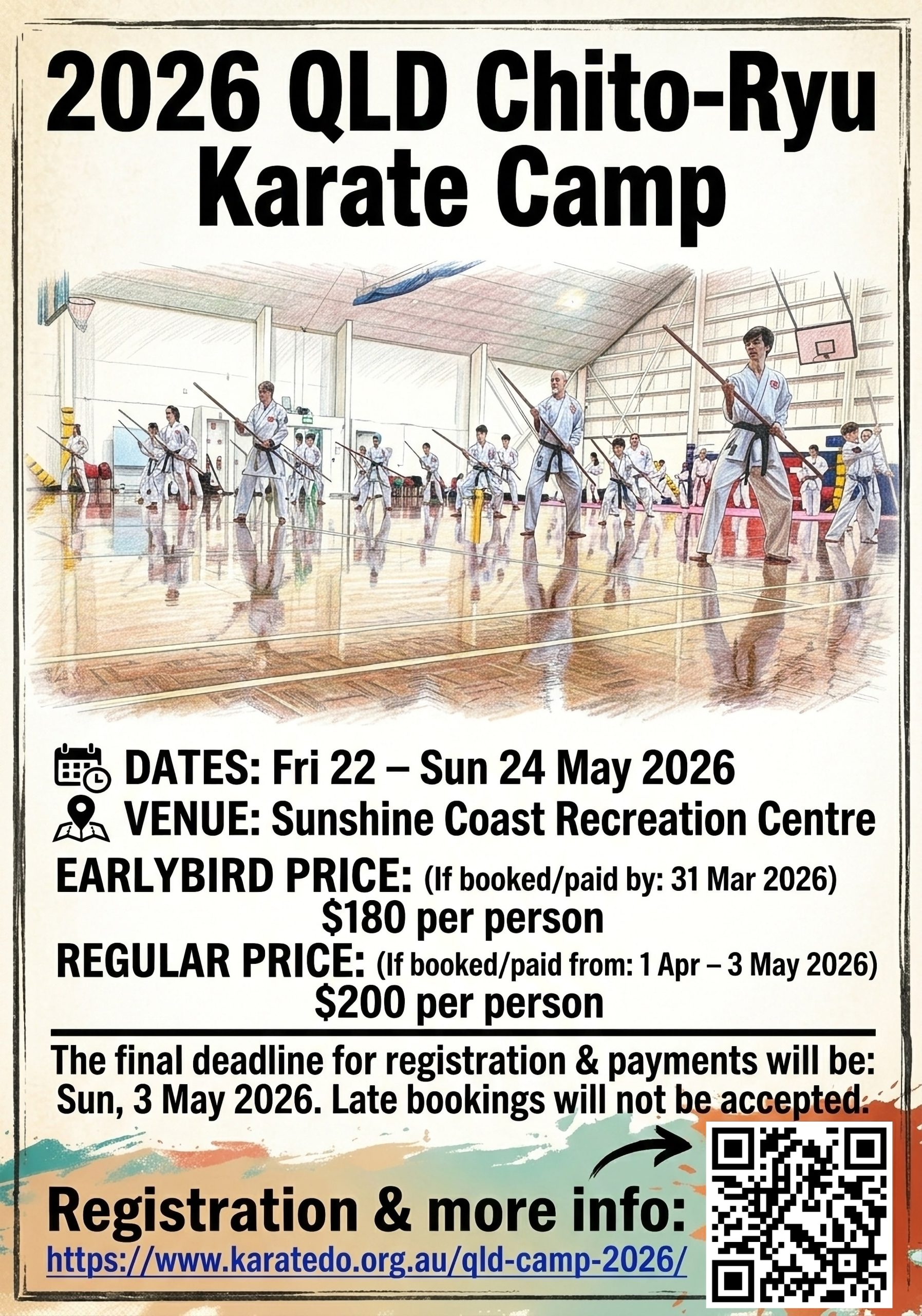 The final deadline for registration & payments will be: Sun, 3 May 2026. Late bookings will not be accepted.